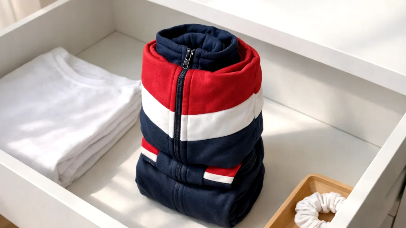 C’è anche un fattore pratico da considerare: le tute da ginnastica, specie quelle in tessuto tecnico o felpato, tendono a occupare molto spazio se piegate in modo tradizionale. Un pantalone della tuta piegato alla maniera classica può facilmente prendere il doppio del volume necessario, togliendo spazio prezioso ad altri indumenti.